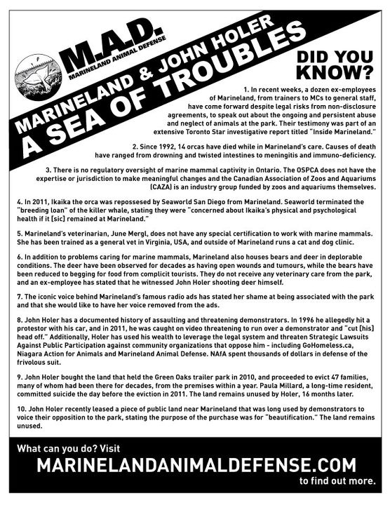 Marineland Animal Defense is a campaign of concerned citizens determined to end animal captivity at Marineland (Niagara Falls, ON).